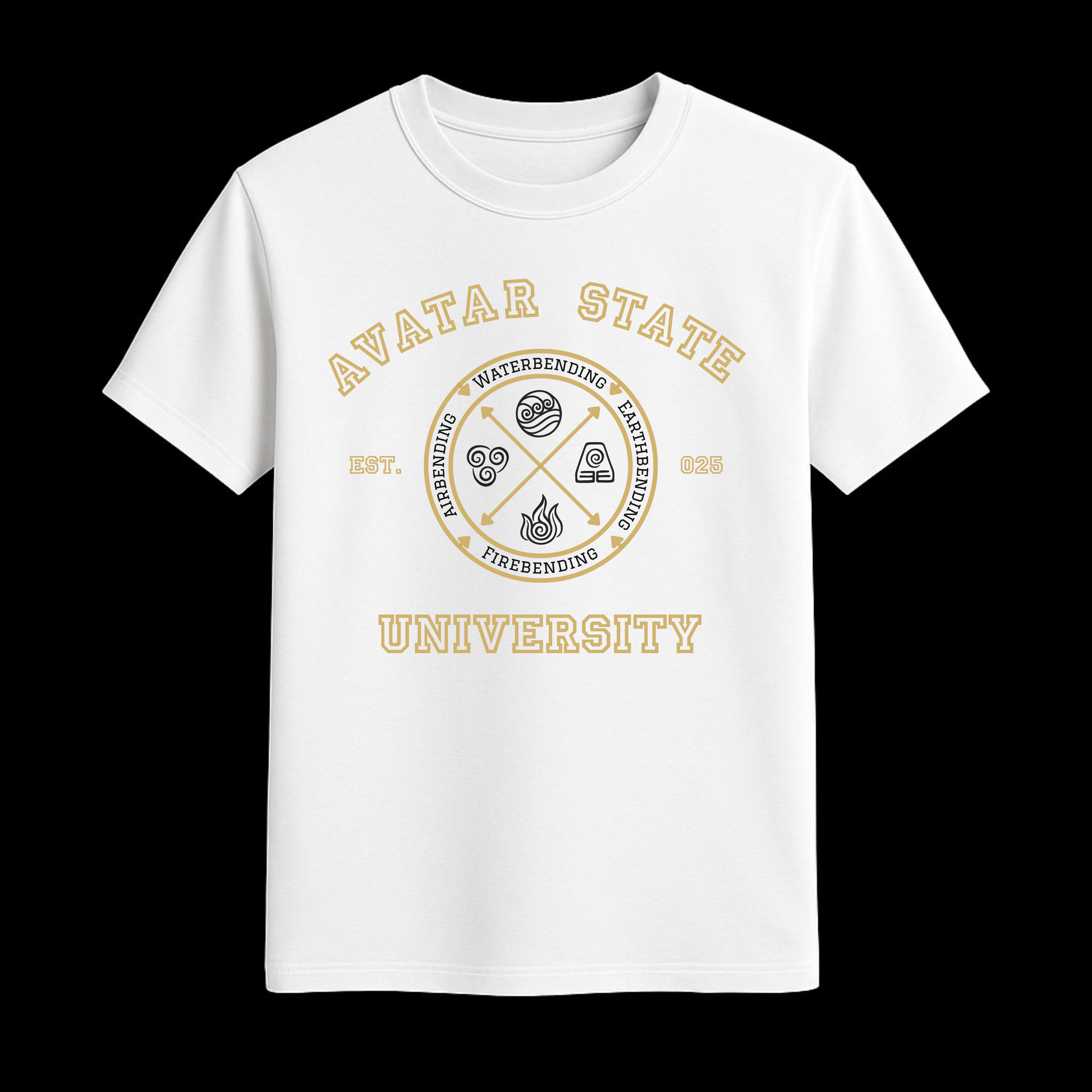 Step into the spotlight with the Day Class Edition of the Avatar State University Tee. A crisp, collegiate inspired piece representing those who lead with clarity, discipline, and power. Featuring the iconic four element seal, this design honors the Avatar legacy while giving it a modern streetwear edge,