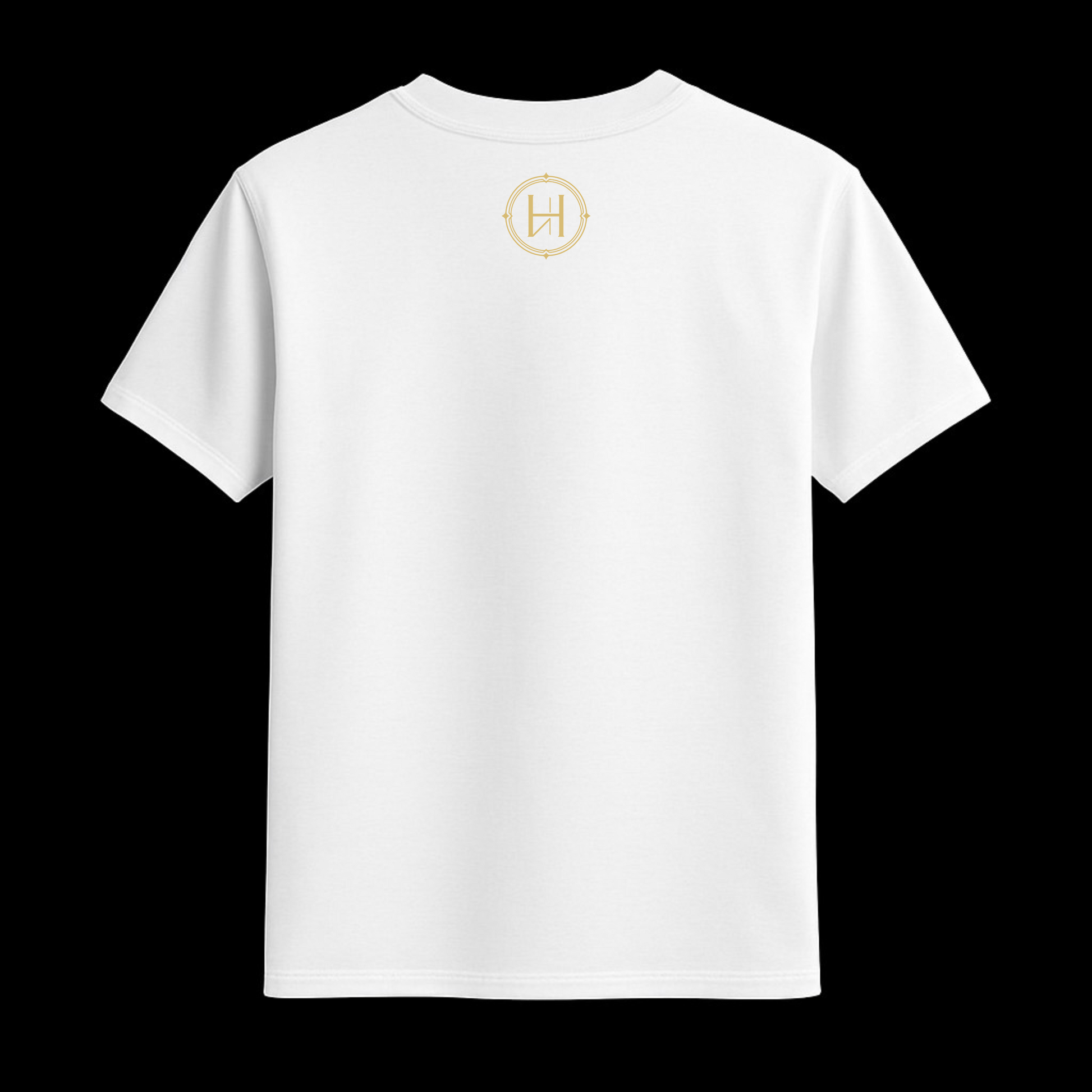 Crafted on a premium white cotton base, the gold print pops with energy, a symbol of balance, tradition, and progression,
